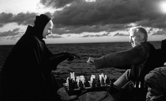 Η πανούκλα απειλεί τη χώρα. Ο ιππότης συναντάει το Χάρο, που έρχεται να τον πάρει, και του προτείνει μια παρτίδα σκάκι με αντάλλαγμα τη ζωή του, αν τον κερδίσει. Ο Χάρος δέχεται. Η σκηνή είναι από τις πιο εμβληματικές στην ιστορία του σινεμά. Ο ιππότης και ήρωας της ταινίας έχει ιδανικά, αλλά κυρίως ερωτηματικά. Η αναστολή που ζητά από το Χάρο δεν είναι από αγάπη για τη ζωή, αλλά από επιθυμία να καταλάβει. Ο ιπποκόμος του, τον οποίο παίζει ο σπουδαίος Gunnar Björnstrand, δείχνει κυνικός γιατί έχει χάσει ακόμα και την περιέργεια των ερωτηματικών. Έχει αποδεχτεί τις αρνητικές απαντήσεις, και το γεγονός ότι ο θεός δεν είναι παρά μια εικόνα, ένα ψευδαισθητικό είδωλο που ο άνθρωπος δημιούργησε υπό την πίεση της άγνοιας, και του φόβου του για το απόλυτο του θανάτου. Οι ηθοποιοί του περιπλανώμενου θιάσου έχουν αποκλείσει από τη ζωή τους τα ερωτηματικά, όχι από χαζομάρα αλλά από ανάγκη και επιλογή, και χαίρονται τη ζωή, το παιδάκι τους, τις φρέσκιες φράουλες, τα ερωτικά παιχνίδια. Σ' αυτούς χαρίζεται η τύχη ή ο Χάρος.