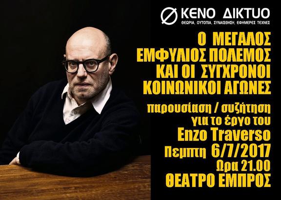 Ο ΜΕΓΑΛΟΣ ΕΜΦΥΛΙΟΣ ΠΟΛΕΜΟΣ ΚΑΙ ΟΙ ΣΥΓΧΡΟΝΟΙ ΚΟΙΝΩΝΙΚΟΙ ΑΓΩΝΕΣ Παρουσίαση συζήτηση για το έργο του Enzo Traverso- Πεμπτη 6/7 ΕΜΠΡΟΣ