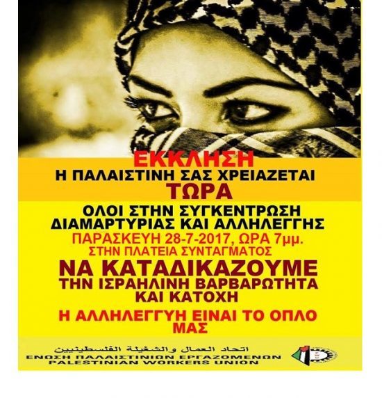 Συγκέντρωση διαμαρτυρίας και αλληλεγγύης στον Παλαιστινιακό λαό