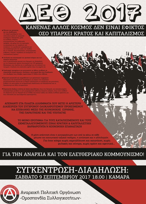 ΔΕΘ 2017: ΣΥΓΚΕΝΤΡΩΣΗ-ΔΙΑΔΗΛΩΣΗ, ΣΑΒΒΑΤΟ 9 ΣΕΠΤΕΜΒΡΙΟΥ | ΚΑΛΕΣΜΑ ΤΗΣ Α.Π.Ο.
