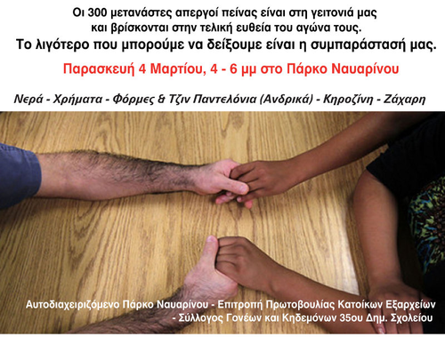 Μάζεμα ειδών πρώτης ανάγκης για μετανάστες - απεργούς