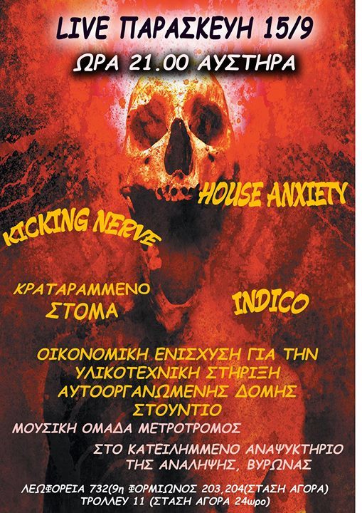 κραταραμμενο στομα , indigo, house anxiety, kicking nerve.. για αγορα υλικοτεχνικού εξοπλισμού, Πάρκο Ανάληψης (κατειλημμενό Αναψυκτήριο) σύντομα αφίσα