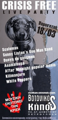 - Παρασκευή 18/03 20:00 :: Συναυλία οικονομικής ενίσχυσης της Βιβλιοθήκης με τα συγκροτήματα