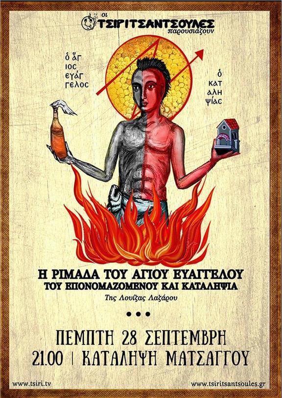 Οι Τσιριτσάντσουλες παρουσιάζουν την θεατρικη παρασταση "Η ριμάδα του Αγίου Ευάγγελλου του επονομαζόμενου και κατηληψία".