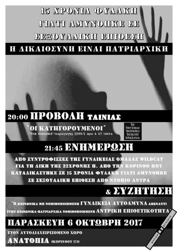 Προβολή ταινίας, ενημέρωση και συζήτηση σχετικά με τη δίκη της 22χρονης από την κόρινθο