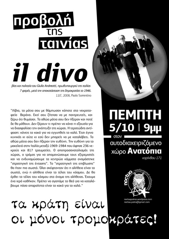 …στον αυτοδιαχειριζόμενο χώρο ΑΝΑΤΟΠΙΑ από την αντιεξουσιαστική συλλογικότητα noctua.