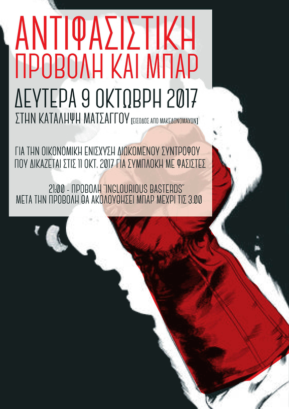 Για την οικονομικη ενίσχυση διωκόμενου συντροφου που δικάζεται στις 11 οκτ. 2017 για συμπλοκή με φασίστες
