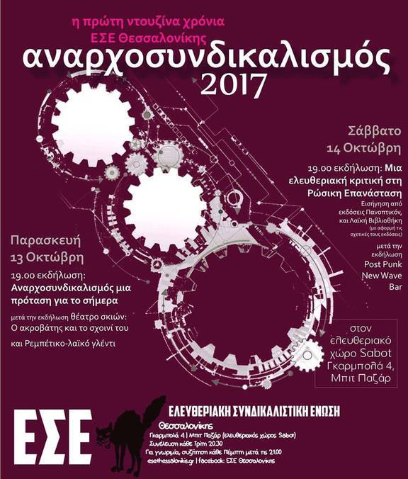 12 χρόνια ΕΣΕ Θεσ/νίκης: Εκδήλωση για αναρχοσυνδικαλισμό, θέατρο σκιών & γλέντι