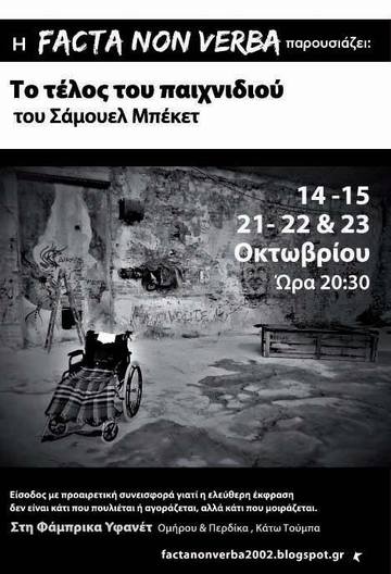 Η Facta Non Verba παρουσιάζει: Το τέλος του παιχνιδιού του Σάμουελ Μπέκετ