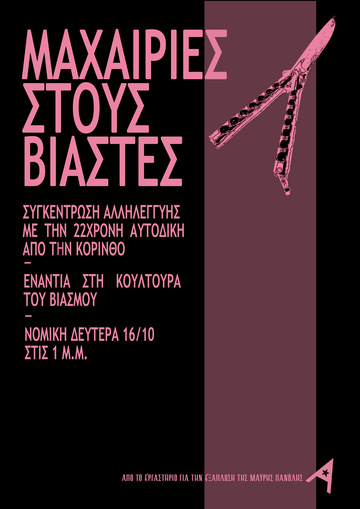 Δεν τρέφουμε αυταπάτες ότι κάθε βιασμός είναι μεμονωμένο περιστατικό που συμβαίνει σε αφελείς κοπέλες από άξεστους αγροίκους στα σκοτεινά στενάκια των μεγαλουπόλεων. Ο βιαστής μπορεί να είναι ο καθένας. Το ξέρουμε κι εμείς το ξέρεις κι εσύ. Είναι φαινόμενο ριζωμένο στη συνείδηση της καθημερινότητας από τα σαλόνια της καλής κοινωνίας μέχρι και τα παγκάκια της επαρχίας.