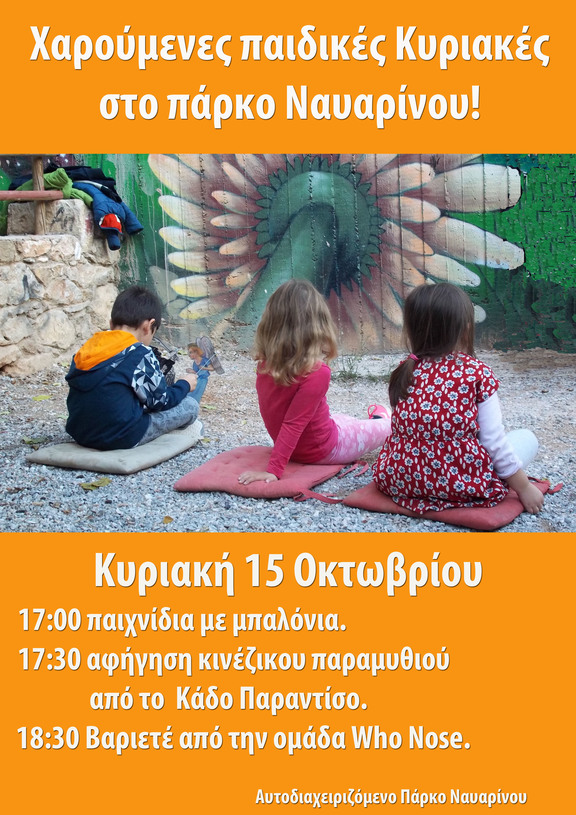 15/10 Και αυτή την Κυριακή συναντιόμαστε στο πάρκο Ναυαρίνου μαζί με τα παιδιά!