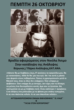 Βραδιά αφιερώματος στον Νικόλα Άσιμο με την ποιητική ομάδα ''Ταξίδι στον χωροχρόνο''.