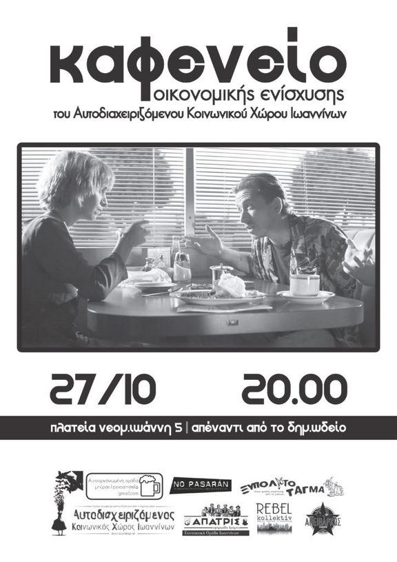 Καφενείο οικονομικής ενίσχυσης του Αυτοδιαχειριζόμενου Κοινωνικού Χώρου Ιωαννίνων από τις ομάδες που στεγάζονται στο στέκι την Παρασκευή 27/10 στις 20.00