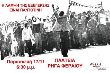 Συγκέντρωση για πολυτεχνείο 17/11 στις 6:30μ.μ. στην Πλ. Ρήγα Φεραίου