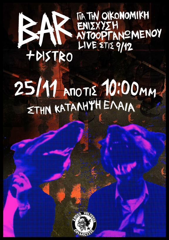 Bar για την οικονομική ενίσχυση αυτοοργανωμένου Live στις 9/12 από την συναυλιακή ομάδα Lotka Volterra.
