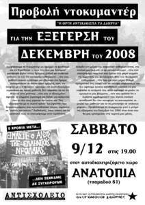 προβολή του ντοκιμαντέρ για το δεκέμβρη του 2008…
