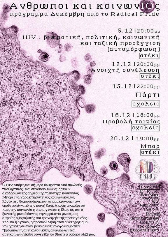 Το ξεκίνημα του κύκλου αυτού γίνεται με την κουβέντα αυτομόρφωσης σχετικά με τη διαρκή επικαιρότητα του HIV και τις πολλαπλές του διαστάσεις σε βιωματικό, πολιτικό, κοινωνικό και ταξικό επίπεδο και θα λάβει χώρα στο Στέκι απόψε στις 8μμ.