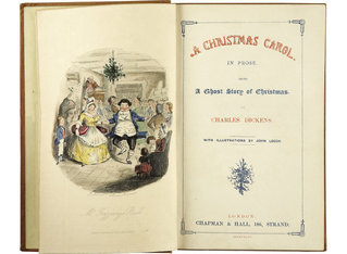 Η νουβέλα του Άγγλου συγγραφέα που υποστήριξε με κάθε τρόπο τους φτωχούς κι ανήμπορους, πρωτοδημοσιεύτηκε στις 19 Δεκεμβρίου 1843 κι αναφέρεται στον Εμπενίζερ Σκρουτζ, έμπορο, που μοναδική του έννοια είναι η συσσώρευση χρήματος. Ο Σκρουτζ στερείται όλες τις απολαύσεις της ζωής, στερείται όλες τις ανθρώπινες σχέσεις και αδιαφορεί για τη ζωή όλων των άλλων αφού σκοπός της ζωής του είναι κάτι ξένο προς την ανθρώπινη ύπαρξη.