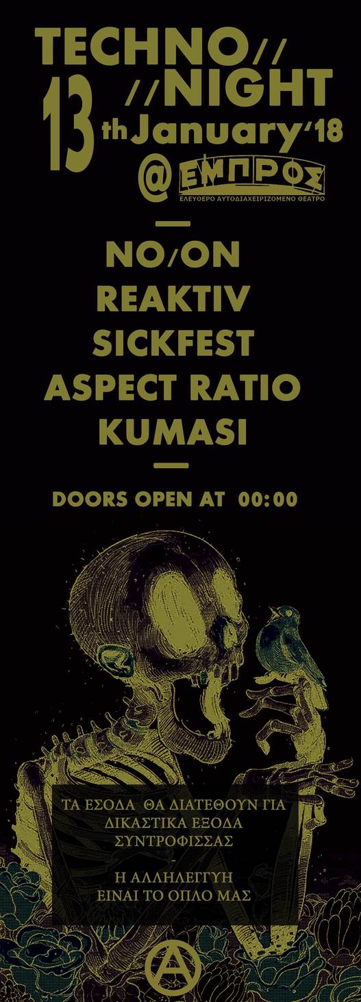 Techno-night party οικονομικής ενίσχυσης συντρόφισσας στο ελεύθερο αυτοδιαχειριζόμενο θέατρο ΕΜΠΡΟΣ