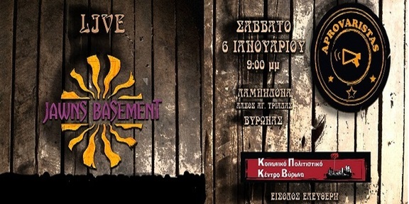 Αυτό το Σάββατο 6 Ιανουαρίου, θα πραγματοποιήσουμε ως ΚΠΚΒ στην Λαμπηδόνα, συναυλία με τους: JAWNS BASEMENT και APROVARISTAS. Ώρα έναρξης 9 μμ., είσοδος όπως πάντα, ελεύθερη!