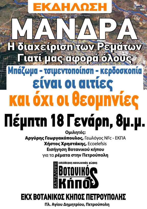 Εκδήλωση-συζήτηση: Μάνδρα - η διαχείριση των ρεμάτων - γιατί μας αφορά όλους