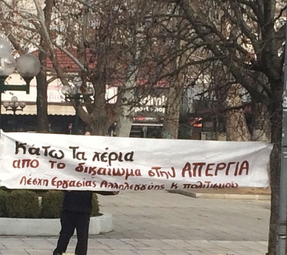 Μια πρώτη απάντηση δόθηκε την Παρασκευή 12/1 στην απεργιακή κινητοποίηση, στην οποία πραγματοποιήθηκε παρέμβαση από μέλη της Λέσχης Εργασίας, Αλληλεγγύης & Πολιτισμού και την Τετάρτη 10/1 στο Ειρηνοδικείο ενάντια στους πλειστηριασμούς, ενώ για τη Δευτέρα 15/1 καλούμε σε μαζική και μαχητική συμμετοχή στη συγκέντρωση στις 6:30 μ.μ. στην πλατεία Ρήγα Φεραίου, η οποία καλείται από εργατικά σχήματα, πολιτικές οργανώσεις, αγωνίστριες κι αγωνιστές.