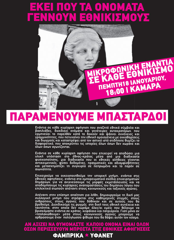 Συγκέντρωση ενάντια σε κάθε εθνικισμό: Πέμπτη 18/1 στις 18.00 στην Καμάρα