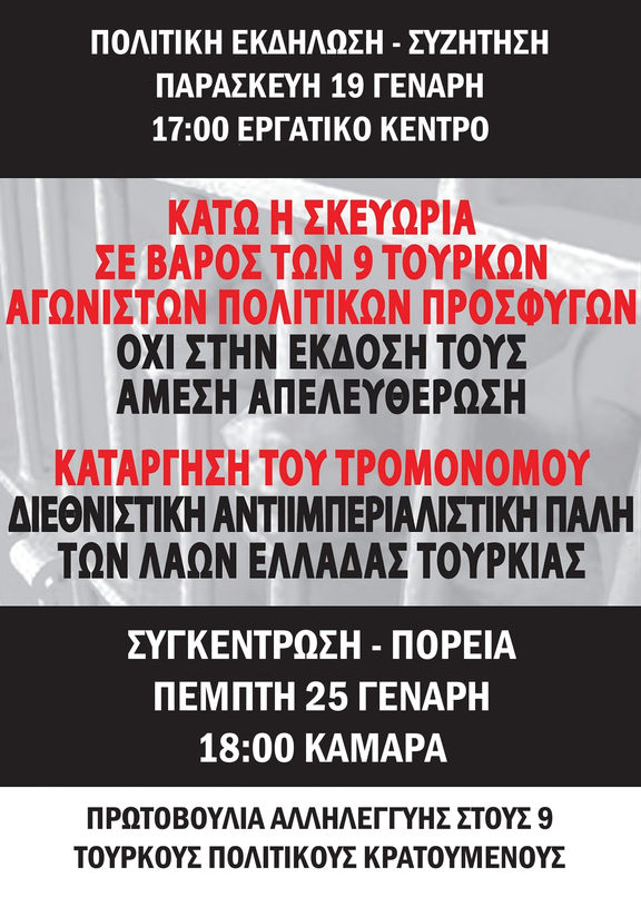Κάτω τα χέρια από τους 9 Τούρκους και Κούρδους αγωνιστές - Διαδηλώσεις, ΠΕΜΠΤΗ 25/1 σε Αθήνα και Θεσσαλονίκη