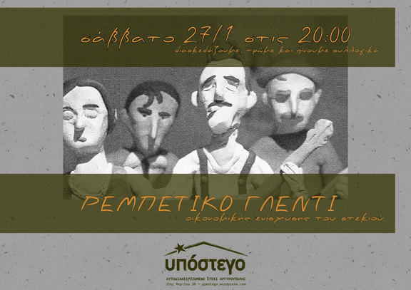 Ρεμπέτικο Γλέντι στο Αυτοδιαχειριζόμενο Στέκι Αργυρούπολης Υπόστεγο για την οικονομική ενίσχυση του χώρου.