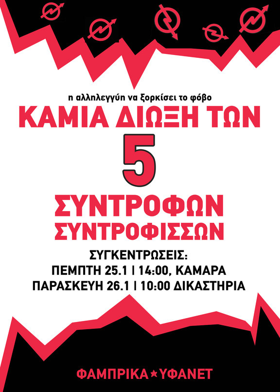 ΑΛΛΗΛΕΓΓΥΗ ΣΤΟΥΣ 5 ΣΥΛΛΗΦΘΕΝΤΕΣ ΤΗΣ ΠΟΡΕΙΑΣ ΤΗΣ 22/1