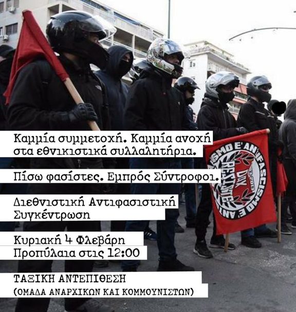 Πίσω φασίστες - Εμπρός Σύντροφοι! Διεθνιστική Αντιφασιστική Συγκέντρωση: Κυριακή 4/2 Προπύλαια στις 12.00