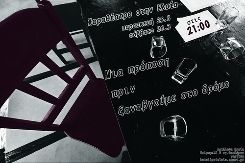 Την Παρασκευή 25/3 & το Σάββατο 26/3 στις 21.00, θα πραγματοποιηθεί στην κατάληψη Ελαία η χοροθεατρική παράσταση