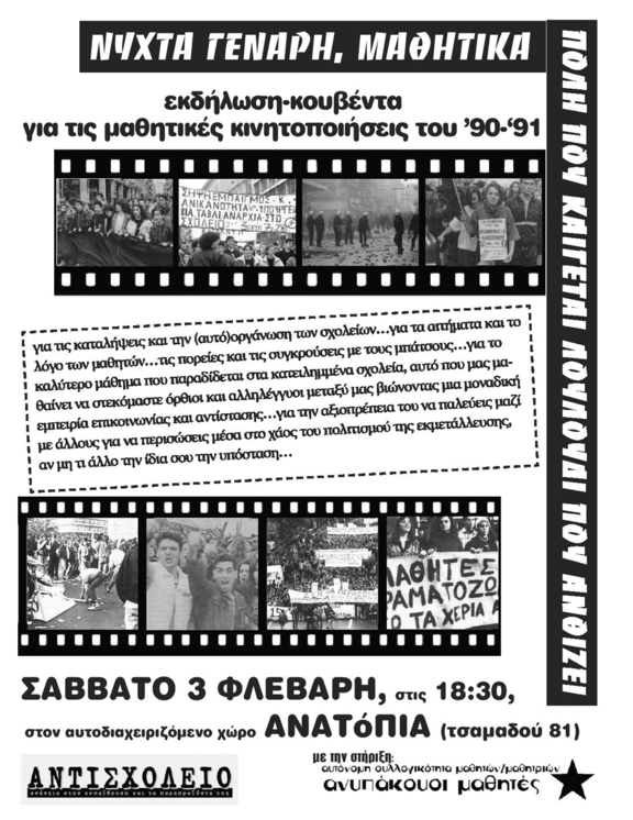 Εκδήλωση-κουβέντα για τις μαθητικές κινητοποιήσεις του ’90-’91