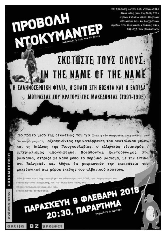 προβολή του ντοκυμαντέρ «σκοτώστε τους όλους: in the name of the name»
