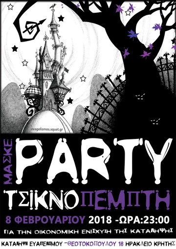 Μασκέ Πάρτυ για την οικονομική ενίσχυση της κατάληψης Ευαγγελισμού
