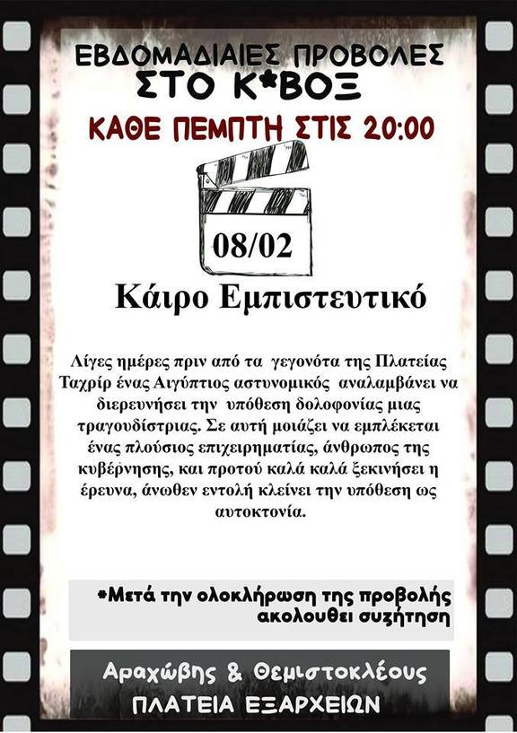 Κάθε Πέμπτη προβολές στο Κ*Βοξ. Μετά την ολοκλήρωση της προβολής ακολουθεί συζήτηση.