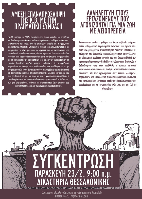 Συγκέντρωσεις Αλληλεγγύης στην πρώην Εργαζόμενη του Aromalab