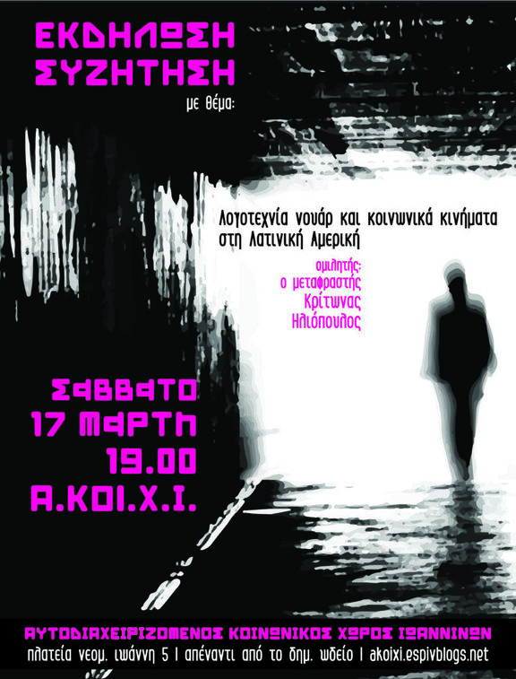 Αυτοδιαχειριζόμενος Κοινωνικός Χώρος Ιωαννίνων ( ΑΚΟΙΧΙ ) Πλατεία Νεομάρτυρος Ιωάννη 5 (κάτω από το δημοτικό ωδείο)