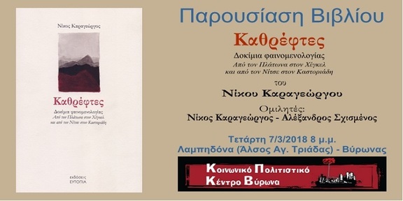 Παρουσίαση Βιβλίου: Καθρέπτες - Δοκίμια φαινομενολογίας του Νίκου Καραγεώργου