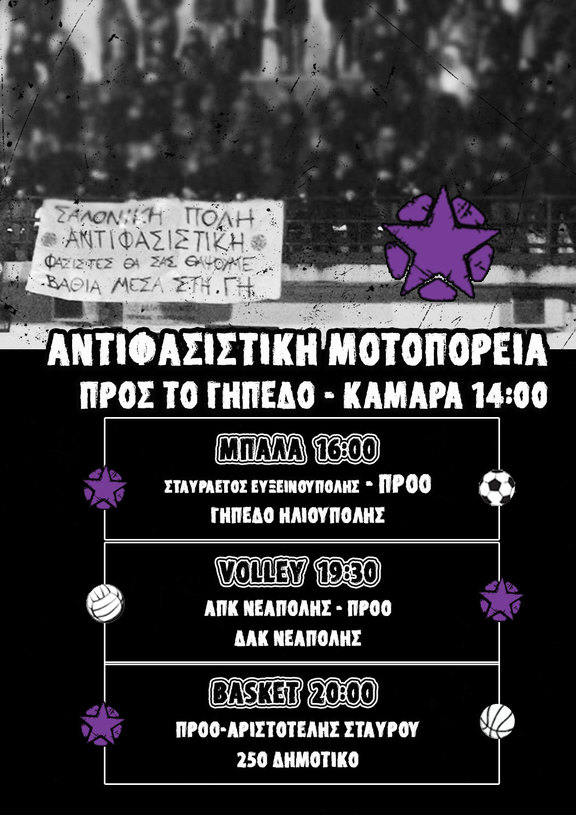 Κυριακη 4/3 μηχανοκινητη αντιφασιστικη πορεια προς το γηπεδο της Ηλιουπολης. Ραντεβου 14:00 Καμαρα...