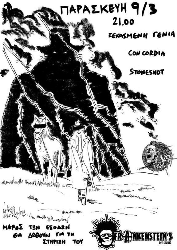 Την ερχόμενη Παρασκευή 9 Μάρτη θα παίξουν στην υπόγα οι Ξεχασμένη Γενιά, Concordia & Stoneshot για τη στήριξη του Frankenstein's Diy Studio (θα διατεθεί μέρος των εσόδων)!