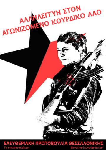 Εκφράζουμε την αμέριστη αλληλεγγύη μας στους Κούρδους επαναστάτες της Ροζάβα και στους διεθνιστές αναρχικούς και κομμουνιστές που μάχονται στο πλάι τους. Η περιφρούρηση της ελευθεριακής επανάστασης στη Ροζάβα αποτελεί ανάχωμα στην παγκόσμια επέλαση του κρατικού και καπιταλιστικού ολοκληρωτισμού και φωτεινό παράδειγμα αντίστασης και επαναστατικού κοινωνικού μετασχηματισμού. Μετά την ηρωική μάχη του Κομπάνι, η υπεράσπιση του Αφρίν είναι η συνέχεια του αγώνα των λαών στο Κουρδιστάν για έναν κόσμο ελευθερίας, ισότητας και αλληλεγγύης.