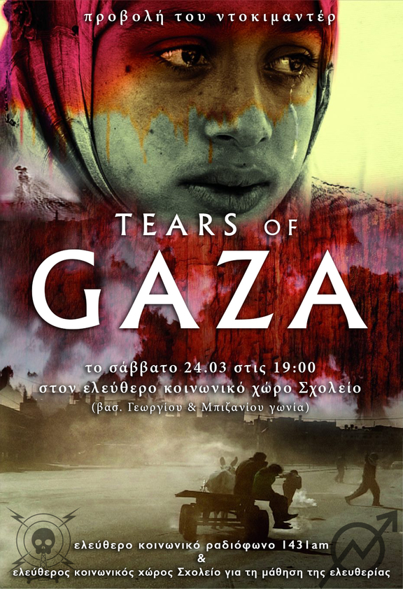 Το ελεύθερο κοινωνικό ραδιόφωνο 1431am και ο ελεύθερος κοινωνικός χώρος Σχολείο για τη μάθηση της ελευθερίας προβάλουν το ντοκιμαντέρ Tears of Gaza