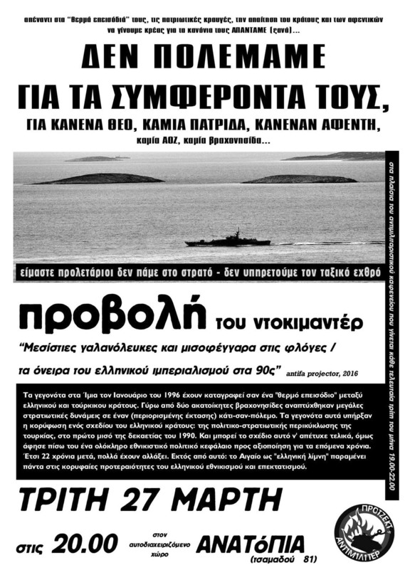 ΤΡΙΤΗ 27 ΜΑΡΤΗ στις 20.00 στον αυτοδιαχειριζόμενο χώρο ΑΝΑΤόΠΙΑ από το πρότζεκτ αντιμιλιτέρ