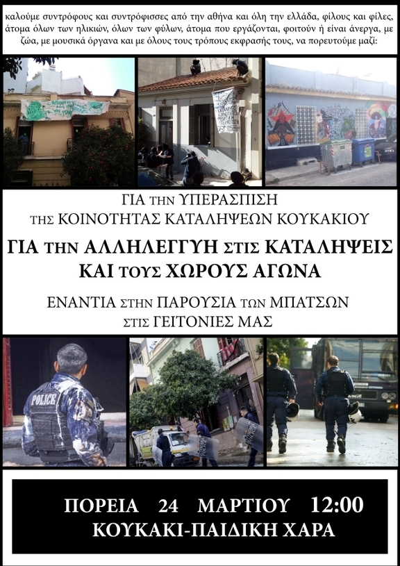 Κάλεσμα στην πορεία υπεράσπισης της κοινότητας καταλήψεων Κουκακίου, Σάββατο 24 Μαρτίου, 12:00, Κουκάκι-Παιδικί χαρά