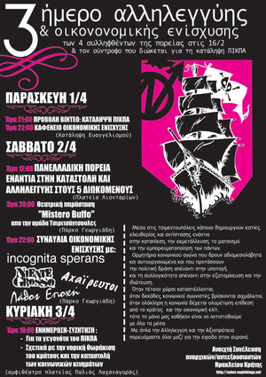 Tριήμερο 1-3 Απρίλη 2011 :: Ενάντια στην καταστολή - Αλληλεγγύης & Οικονομικής Ενίσχυσης στους 4 συλληφθέντες της 16/2/2011 & τον σύντροφο που διώκεται για τη κατάληψη του ΠΙΚΠΑ στο Ηράκλειο Κρήτης.