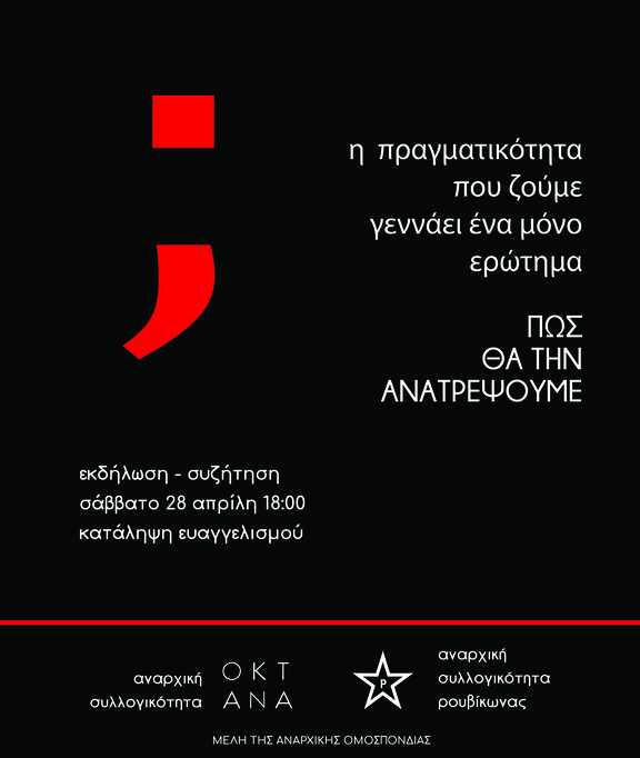 Σάββατο 24 Απρίλη στις 18:00 στη κατάληψη ευαγγελισμού
