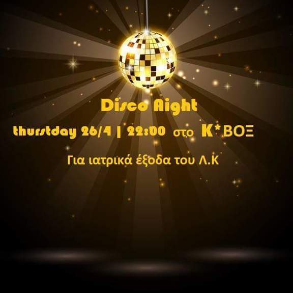 ΠΕΜΠΤΗ 25 ΑΠΡΙΛΙΟΥ ΑΠΟ ΤΙΣ 22:00 DISCO NIGHT ΣΤΟ Κ*ΒΟΞ ΓΙΑ ΙΑΤΡΙΚΑ ΕΞΟΔΑ ΤΟΥ ΣΥΝΤΡΟΦΟΥ Λ.Κ