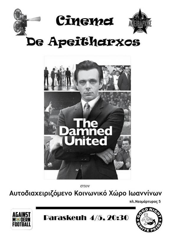 Ο Αυτοοργανωμένος Αθλητικός Σύλλογος Απείθαρχος Ιωαννίνων διοργανώνει προβολή της ταινίας The Damned United την Παρασκευή 4/5, στις 20.30, στον Αυτοδιαχειριζόμενο Κοινωνικό Χώρο Ιωαννίνων.