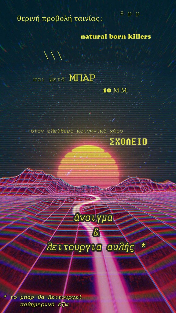 Θερινή προβολή ταινίας και Ανοιγμα της αυλής και του εξωτερικού μπαρ του Σχολείου